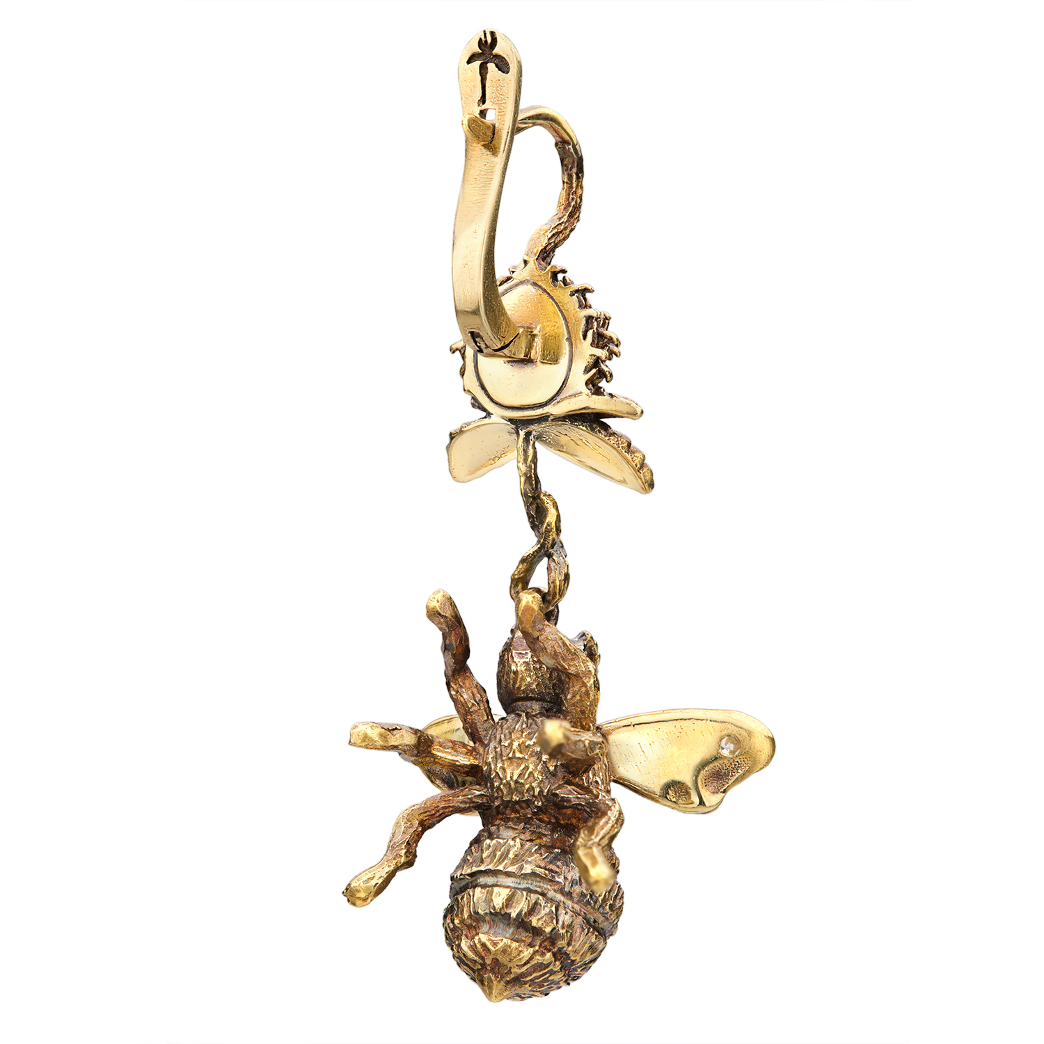 Earrings chandelier BUMBLEBEE and CLOVER encrusted with cubic zirconias. Composition: jewelry alloy-brass (brass), patination, cubic Zirconia, handmade. Color: antique gold, transparent. Size: height 4.7 cm, clasp-English lock Weight 15.2 g per pair