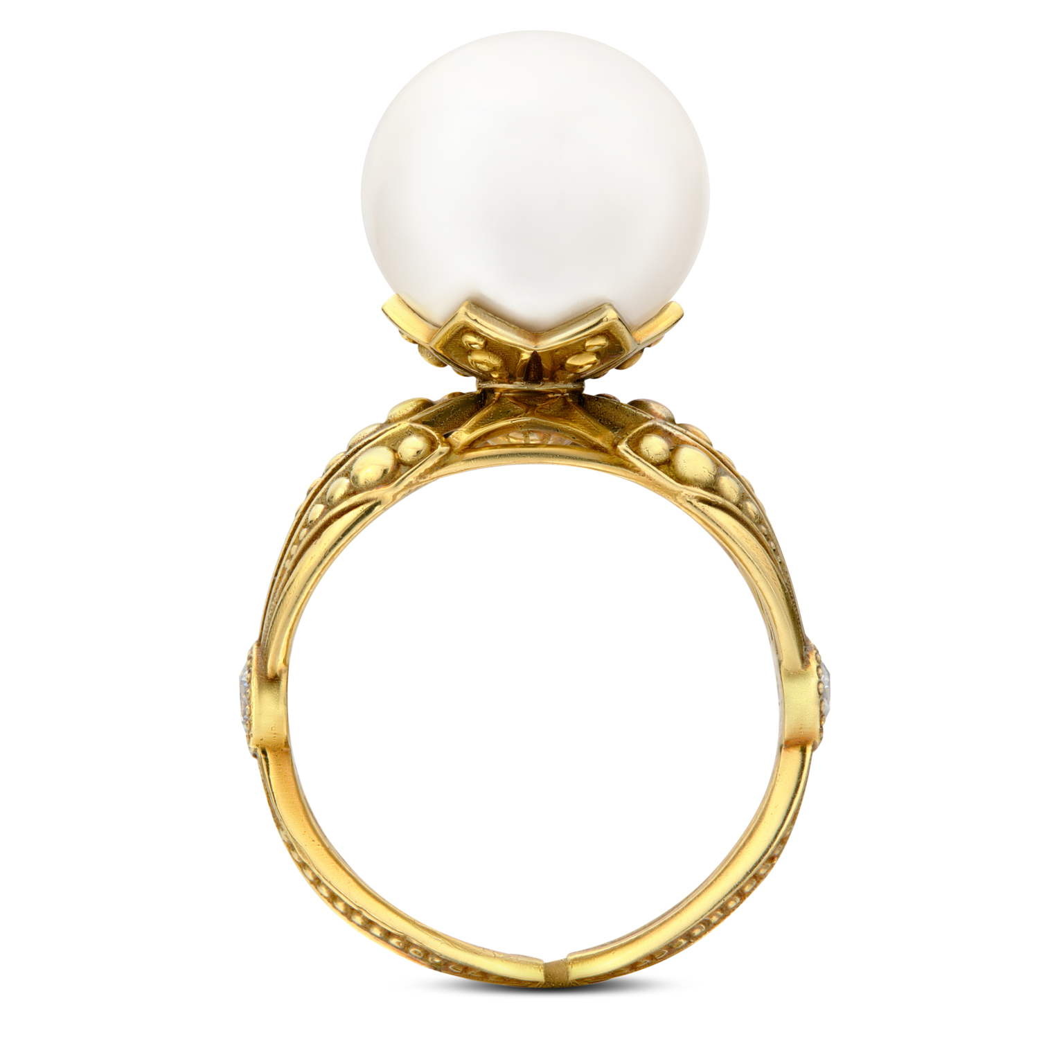 Ring "Florentine iris", inlaid with pearls and cubic Zirconia. Composition: jewelry alloy-brass (brass), gold coating, patination, Swarovski pearls, cubic Zirconia, handmade.Color: antique gold, white, transparent. Size: universal, the ability to place the tire from 17 to 19 RUS